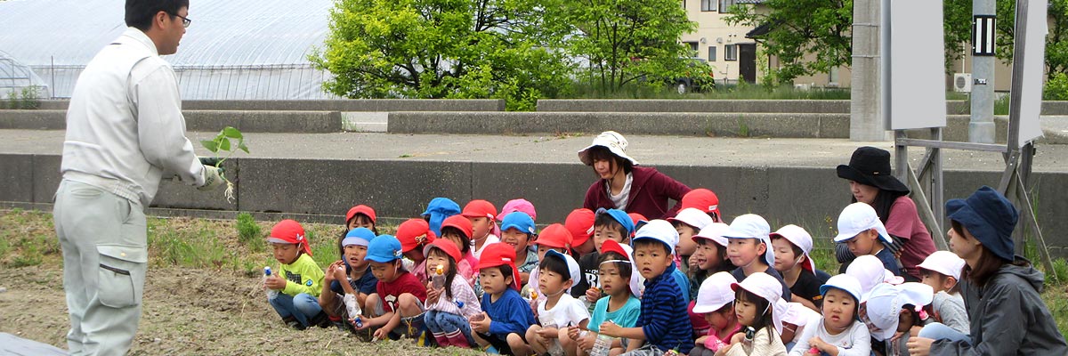 山島こども園では、「山島」という地の特徴を活かして、子ども達にたくさんの経験をさせてあげたい。そして、子ども達にはたくさんの人とふれ合ってほしいという思いから、地域の方々に手伝ってもらいながら、子ども達がいろいろな経験をする機会を多く持つようにしています。