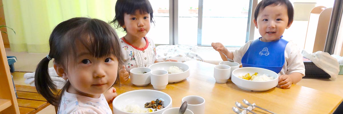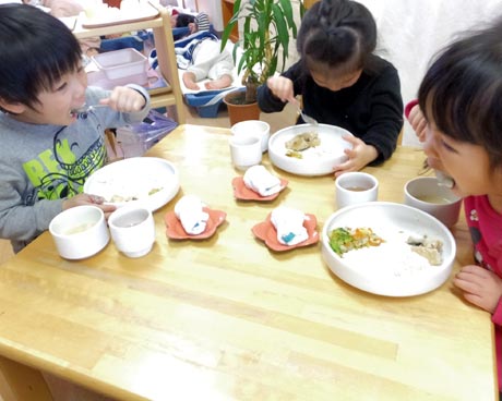 こども園では、食材や材料を作ってくれた方々に感謝し、楽しく食べるということを大切にしています。