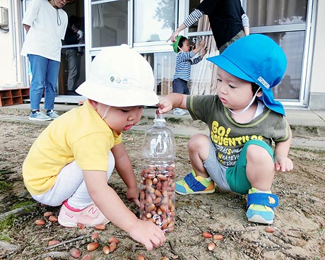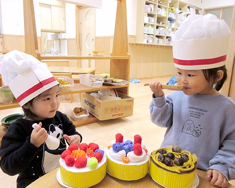 戸外あそび(身体を動かす遊び・園庭・散歩など) 室内あそび(積木・ごっこ遊び・ゲーム遊び・絵本・造形活動など) ※ふれあい遊びや、異年齢交流を行っています。 |